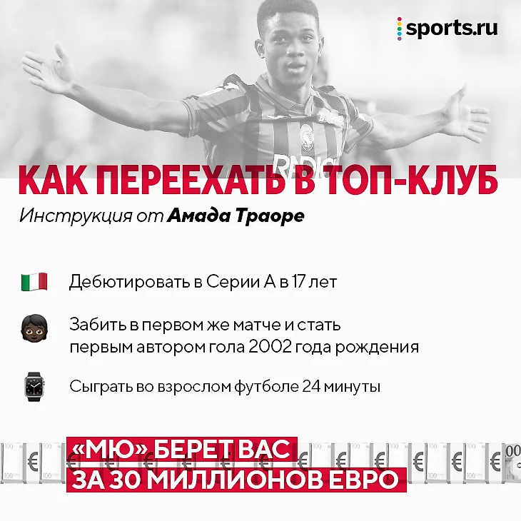 Траоре дебютировал за «Аталанту» в Серии А в прошлом октябре. Команда Гасперини разнесла «Удинезе» (7:1), а Амад вколотил седьмой. Вместе с Ансу Фати Траоре – единственный футболист 2002 года рождения, уже забивший в топ-лиге.