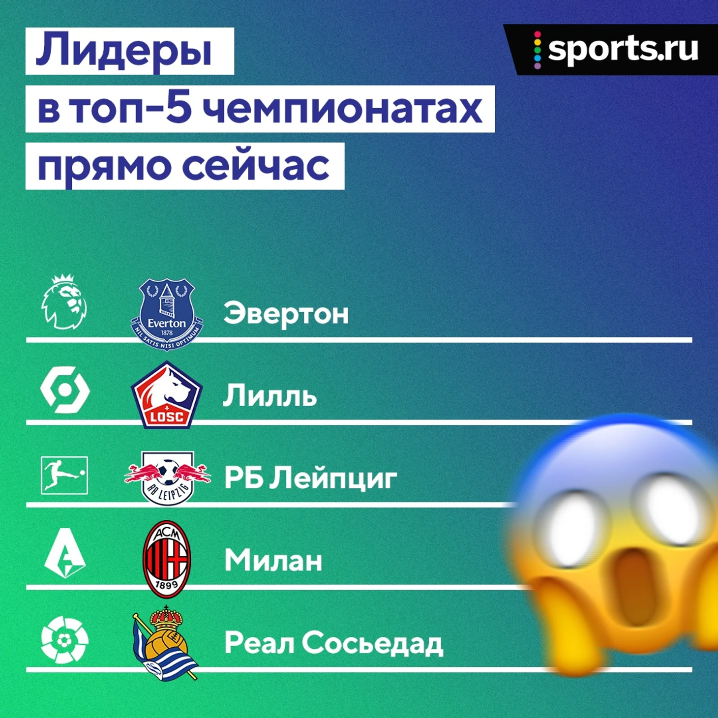 Турнирные таблицы пяти топовых чемпионатов к концу октября выглядят непривычно. Посмотрите, кто лидирует в главных лигах Европы:
