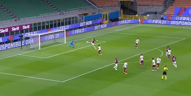 В самом начале португалец Леау после перехвата и быстрой комбинации «Милана» прострелил на Златана – и швед длиннющей ногой дотянулся до мяча. Это, кстати, самый быстрый гол Ибрагимовича за «Милан» в Серии А.