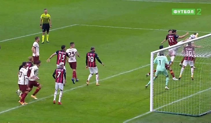 «Рома» быстро отыгралась: Джеко замкнул головой после углового. Отдельное спасибо вратарю «Милана» Тэтэрушану (у Доннаруммы коронавирус) – румынский кипер вышел на навес, но не дотянулся.