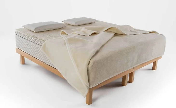 • Она создана из 100% натуральных и экологически чистых материалов. Матрас – без пружин и пены, терморегуляторы предохраняют от перегревания или замерзания, основание кровати приспосабливается к поясничной структуре человека и его движениям во время сна.