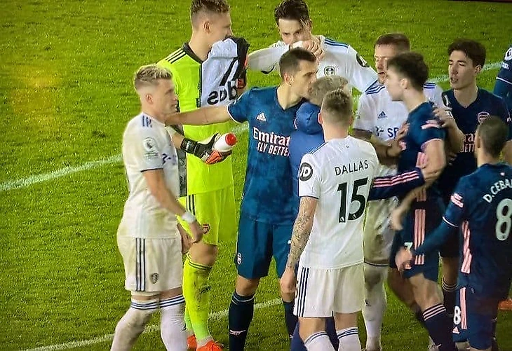 Вспышка в игре с «Лидсом» выглядит как логичный конец жаркой недели. По информации Дэвида Орнстейна из The Athletic, на тренировке 13 ноября Дани Себальос грубо подкатился под Давида Луиза, за что получил от защитника в нос.