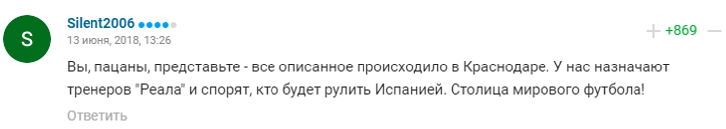 • Казалось, все прекрасно. Но за день до старта чемпионата мира и за два дня до первого матча испанцев с Португалией тренера уволили. Лопетеги взбесил боссов испанской федерации переговорами с «Реалом». Ставший меньше месяца назад президентом федерации Луис Рубиалес узнал о назначении Лопетеги в «Реал» всего за 5 минут до публикации новости на официальном сайте клуба. В тот момент он находился в Москве, где проходил конгресс ФИФА, но тут же помчался в аэропорт и вылетел в Краснодар. Всю ночь и утро шли тяжелые переговоры.
