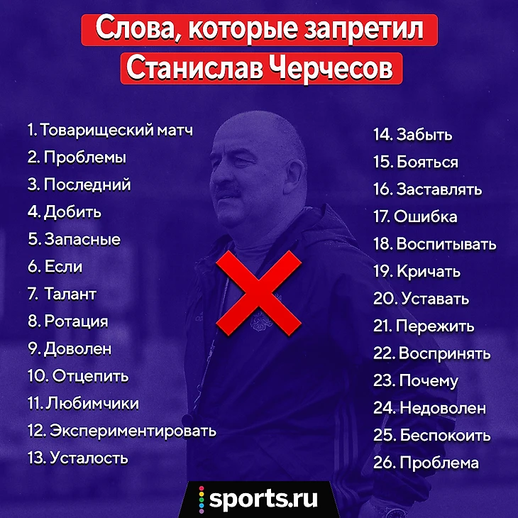 Привет! Перед началом матчей сборных мы попросили вас написать самый смешной, трогательный, удивительный, фантастический рассказ, используя слова, которые в разное время запрещал Станислав Черчесов. Для тех, кто забыл – в стоп-листе главного тренера сборной России сразу 26 пунктов.