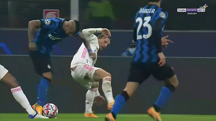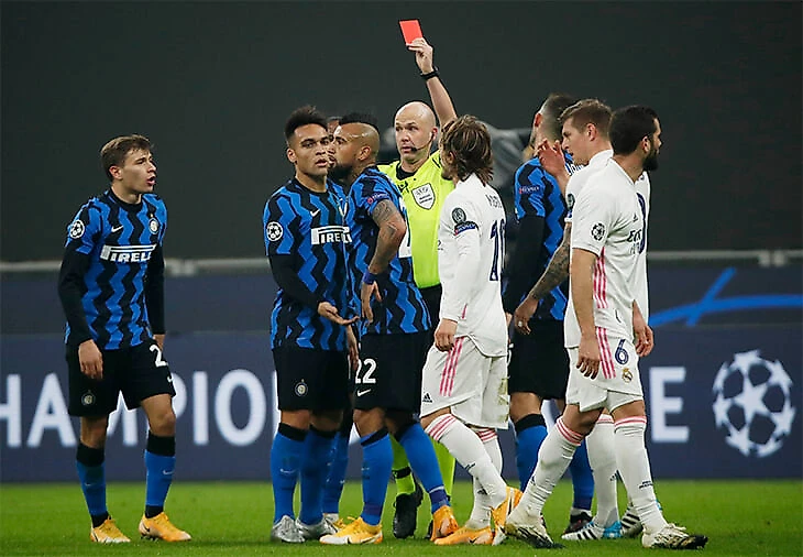 Это еще ладно: в Мадриде «Интер» отыгрался с 0:2 (а решающий третий пропустил на 80-й минуте). Но на исходе получаса настоящий концерт на пустом «Сан Сиро» закатил Артуро Видаль. Чилиец попытался повторить опыт Начо, продрался в штрафную, споткнулся об Варана с Модричем и повалился на газон. В гневе Видаль затребовал у Энтони Тэйлора пенальти.