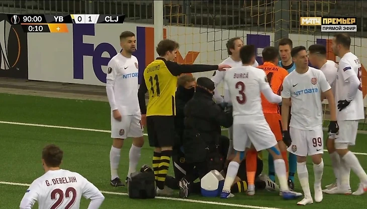 Нсаме, кстати, сразу уравнял составы: после розыгрыша мяча с центра поля нападающий «Янг Бойз» воткнулся в защитника, получил красную и ушел в подтрибунку.
