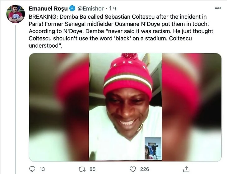 Финал шумного скандала в ЛЧ: Ба и Кольцеску созвонились. Демба был против слова «черный» – но не считал это расизмом
