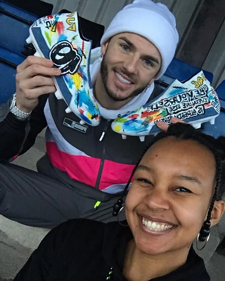 На одной бутсе нарисована десятый номер, под которым играет Мэддисон, на второй – жизненная мантра «Будь собой, все остальное уже занято».
