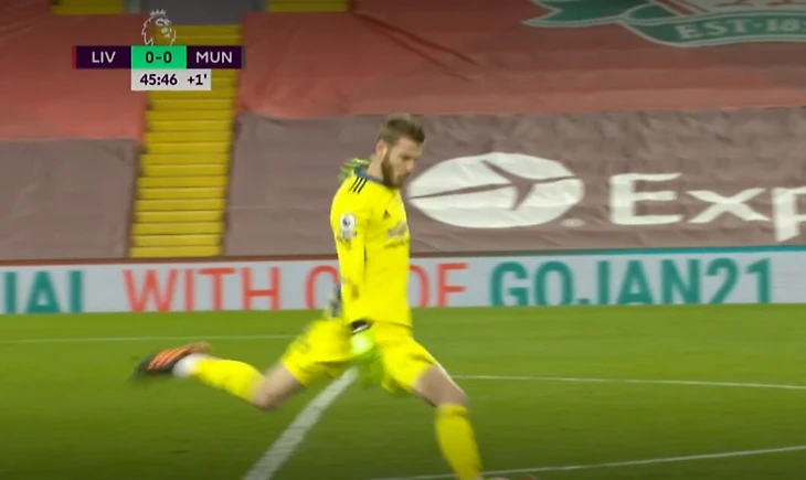 А вратарь «МЮ» разыграл свободный только через 36 секунд. Что логично: его команда страдала у своих ворот почти всю первую половину, киперу хотелось потянуть время и приблизить перерыв.