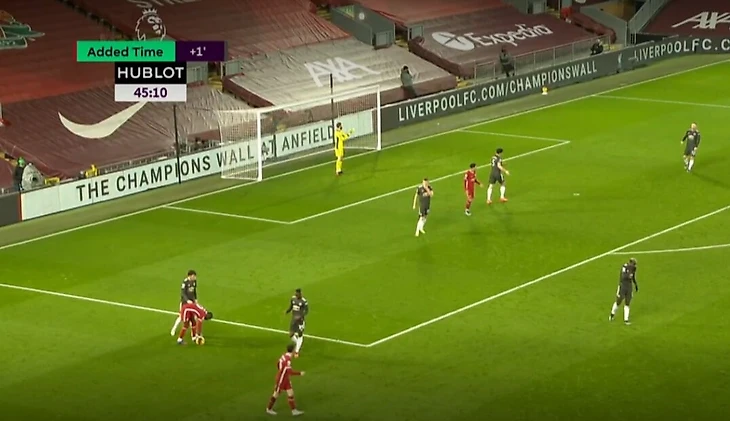 Смотрите: в начале компенсированной минуты Мане попал в офсайд – на 45:10 игра уже точно остановлена.