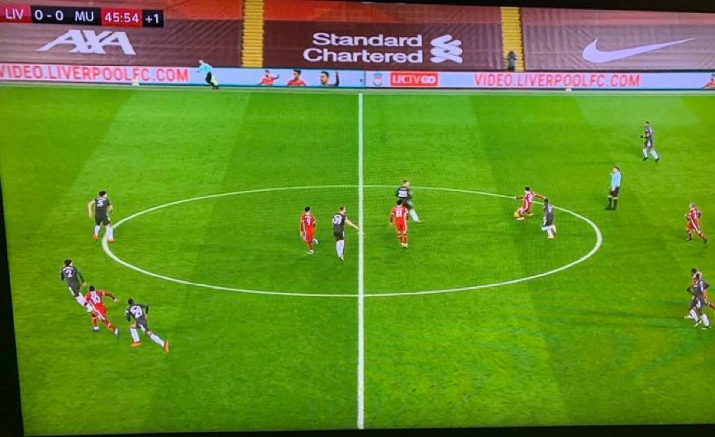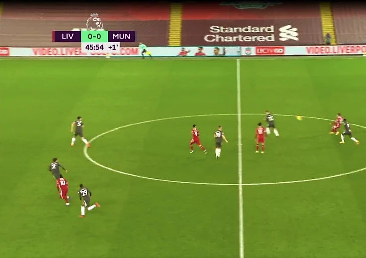«Ливерпуль» мощно давил «МЮ» в первом тайме: команда Оле-Гуннара Сульшера часто присаживалась в штрафную всемером, а атаковала втроем, «Юнайтед» проиграли тайм 1:9 по ударам, сами пробили только на 34-й – в общем были близки к пропущенному.
