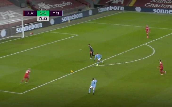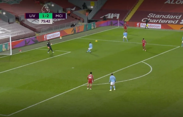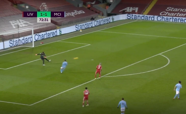 Мяч в итоге снова прикатился к киперу. Да, не самая выгодная позиция, но выбор был – а Алиссон вместо выноса сделал подарок Фодену, который сблизился и подарил удар по пустым воротам Гюндогану.
