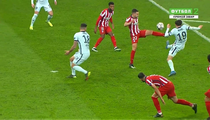 А немецкий судья после переговоров неожиданно указал на центр. По ходу атаки казалось, что к Жиру мяч отскочил от Маунта, но англичанин вообще не участвовал, а форварду «Челси» помог отскок от защитника «Атлетико» Эрмосо.