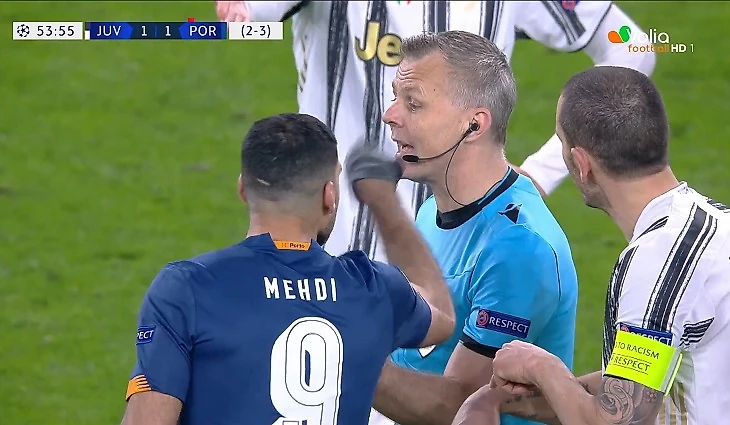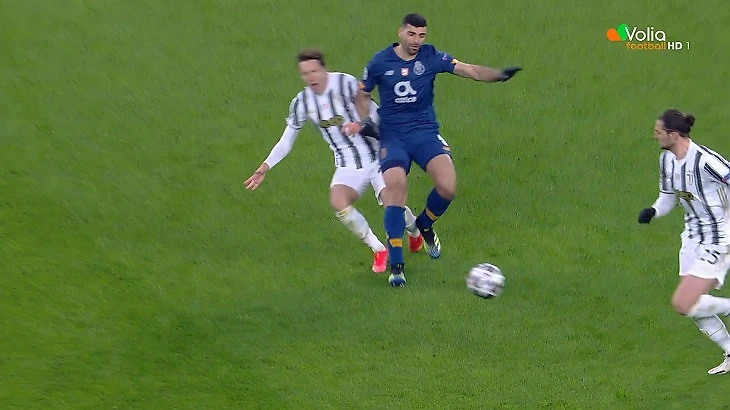 51:10. «Ювентус» разыграл угловой, «Порту» отбился – но мяч оказался у Кьезы. Тареми напролом бежал накрывать итальянца и влетел в него, не пытаясь играть в мяч.