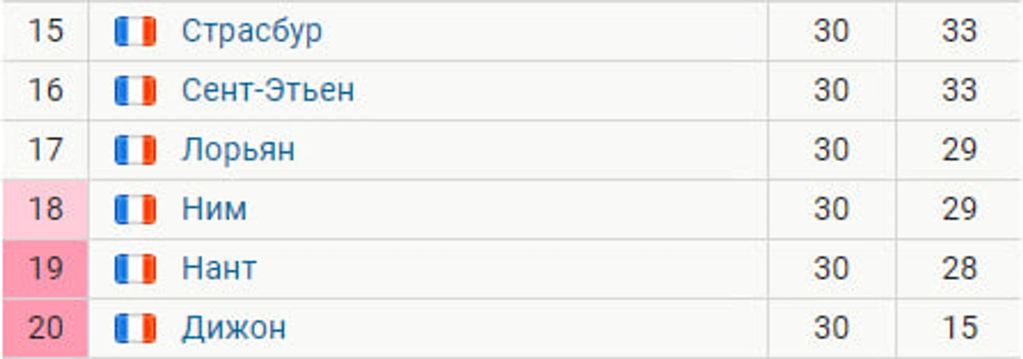 До этого Лорьянте пробовал забить со штрафного – там вратарь Альбан Лафон с трудом потащил. А на 87-й минуте кипер на справился, и Арман спас «Лорьяну» ничью. А заодно и принес важнейшее очко в борьбе за выживание. Сейчас подвал таблицы Лиги 1 выглядит так: