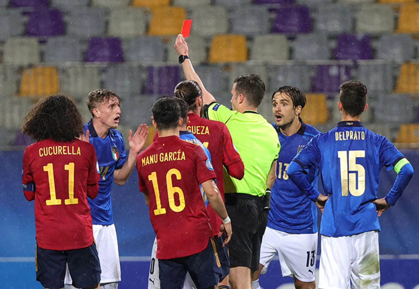 Испания и Италия получили 3 красных за минуту