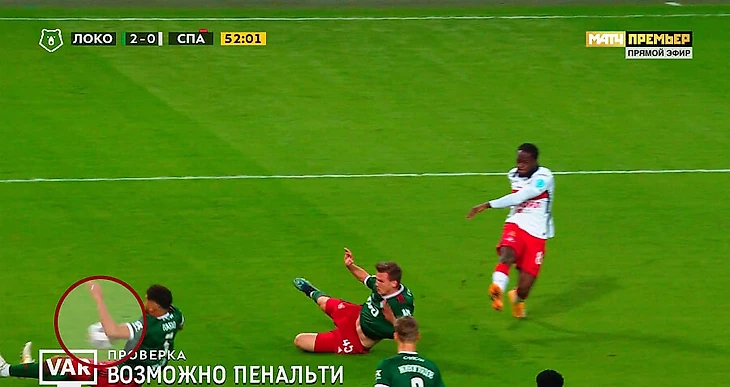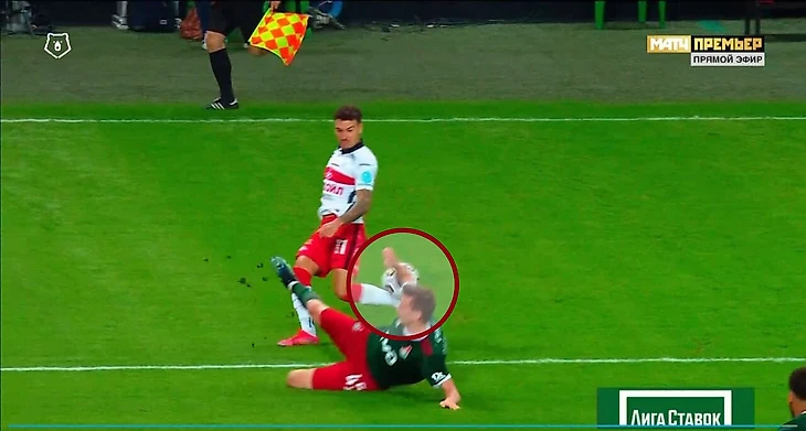 На 87-й минуте «Спартак» атаковал по правому флангу, подачу Ларссона в подкате накрыл Сильянов. И здесь мяч отлетел ему в руку – от ноги. По крайней мере, так кажется на кадрах повтора.