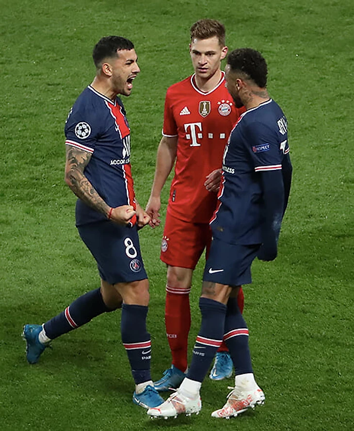 Самое контрастное фото вечера вторника: Неймар и Леандро Паредес бурно празднуют проход «ПСЖ» на фоне отстраненного Йозуа Киммиха.