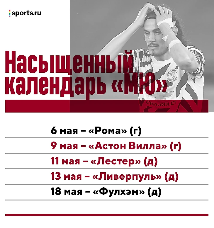 Но сейчас «МЮ» находится в самом жестком отрезке. За неделю – с 6 по 13 мая – команде Оле-Гуннара Сульшера придется сыграть в четырех матчах (в одном уже сыграли), еще одна игра – 18-го.