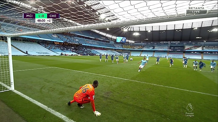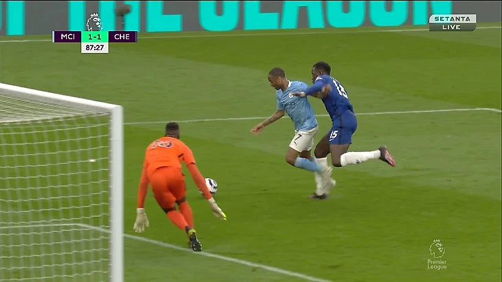 Первым на отскок успел Стерлинг: Рахим опередил и Агуэро, и набегавшего Риса Джеймса. А помните, что в моменте с пенальти мяч тоже сначала отскочил от аргентинца?