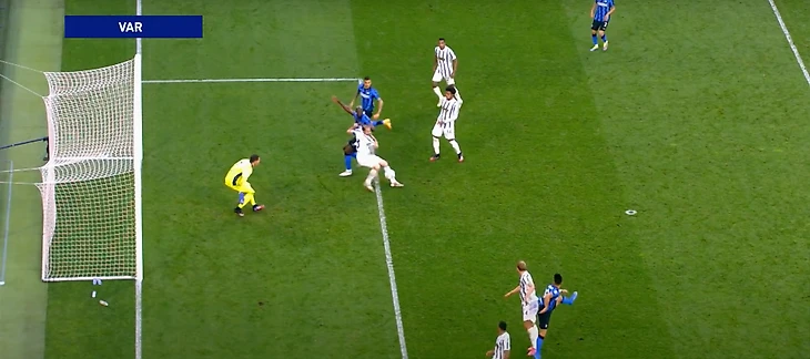 Хоть ВАРом и пользовались до этого несколько раз, первый действительно спорный момент возник уже в концовке: на 83-й минуте после навеса Бареллы в свои ворота срезал Кьеллини – защитник настаивал, что его держал Лукаку, но гол сохранили.
