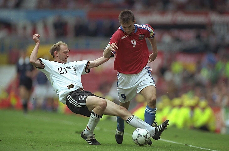 До какой стадии дошли: в финале того Евро и встретились две команды из группы C – Германия и Чехия. Дело дошло до овертайма, и на 95-й минуте золотой гол забил Оливер Бирхофф.