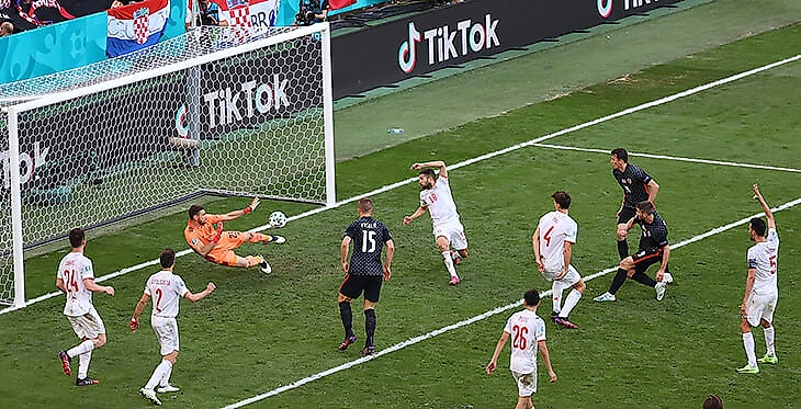 Но было же еще и дополнительное время: там все началось просто с инфарктов для испанских болельщиков – Оршич бил из опаснейшей позиции и промазал, а потом Унаи Симон отбил тяжелейший выстрел.