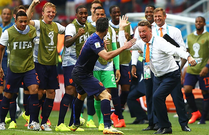 • Второй заход Ван Гала – история. Голландец вернулся в сборную в августе 2012-го после проваленного Евро (набрали 0 очков в группе с Данией, Германией и Португалией) и сразу преобразил команду: в отборе на ЧМ-2014 Нидерланды лишь раз сыграли вничью (с Эстонией на выезде), играя в классические 4-3-3.