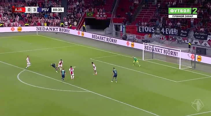 Во втором тайме ПСВ создал гораздо больше моментов и заслуженно забил еще два гола. На 76-й минуте вышедший на замену Йорбе Вертессен опять пробил ближний угол Пасвера.