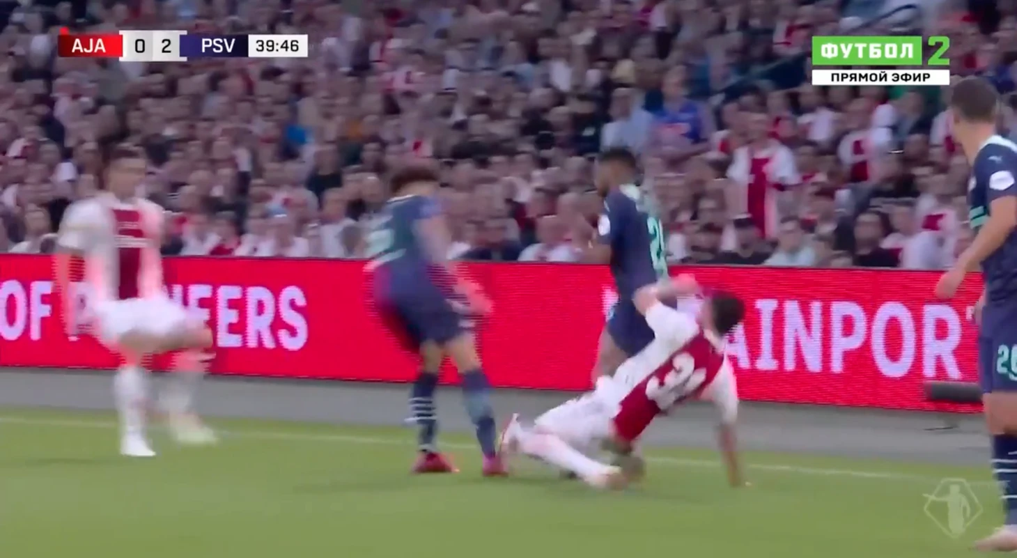 На 40-й минуте «Аякс» осложнил для себя и без того непростую ситуацию: Николас Тальяфико прямой ногой влетел в голеностоп Андре Рамальо. Куйперс, посовещавшись с видеоассистентами, показал красную.