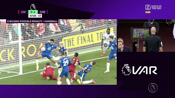 Мяч после углового заметался по штрафной, Менди выронил его на голову Матипу, тот попал в перекладину, на добивании Садьо Мане опередил защитника и проткнул в створ – но там оказался Рис Джеймс. Он выбил мяч, но уже в следующей паузе Энтони Тэйлор приостановил игру, потому что получил подсказ в наушник: надо смотреть.