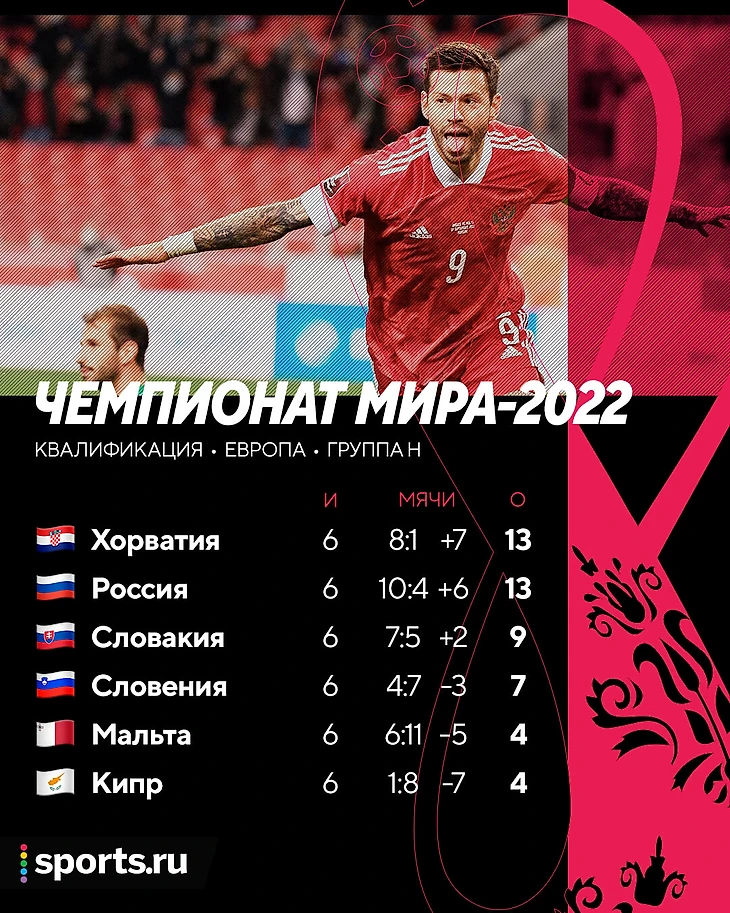 Россия потеряла лидерство в группе из-за разгромной победы Хорватии – пострадали словенцы (3:0). Причем последний гол залетел уже на 94-й минуте – обойти Россию по разнице забитых мячей позволил точный удар Николы Влашича.