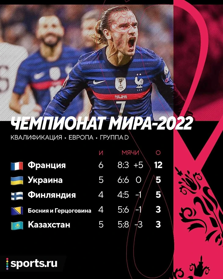 Команда Дешама разделалась с одним из главных конкурентов по группе – до этой игры финны были даже впереди по потерянным. Теперь французы чувствуют себя еще спокойнее – с 12 очками после 6 туров. Затем идут украинцы и финны – у них только по пять очков, но у команды Теему Пукки еще два матча в запасе.