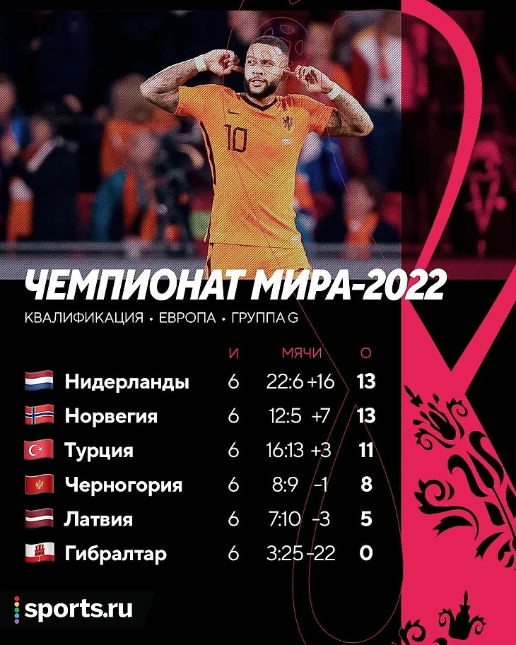 В итоге после 6 туров в группе G по 13 очков у голландцев и норвежцев, турки отстают на 2 очка и пока тоже в деле. Очень интересно и ничего непонятно.