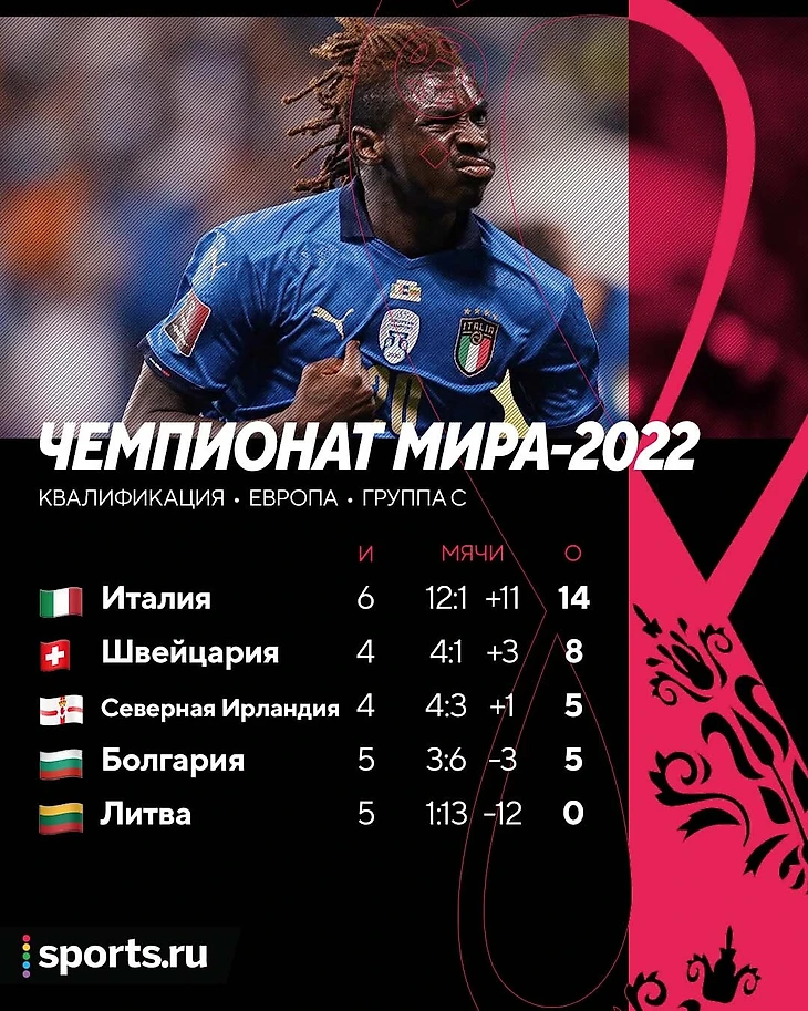 Группа C: итальянцы разгромили Литву (5:0 с дублем Кина), Швейцария не забила североирландцам