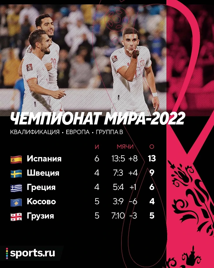 Но теперь с поражением шведов от греков (1:2) Испания вернула ситуацию в группе в свои руки. Для прямого выхода из группы надо обыграть как раз Грецию и Швецию.