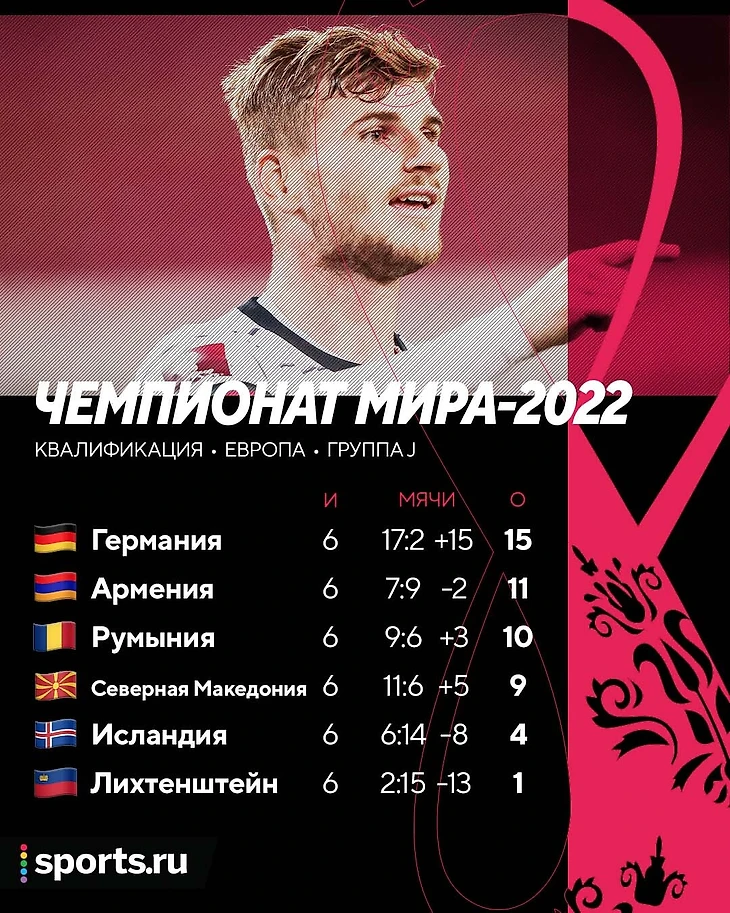 Группа J: немцы разобрались с исландцами (4:0, у Вернера гол), Армения пока на втором