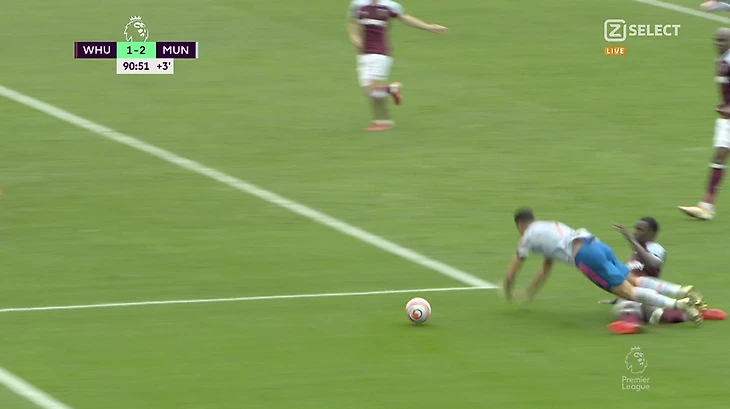 Во втором тайме судья Мартин Аткинсон никак не хотел назначать пенальти: сначала Соучек упал в штрафной «МЮ» после подката Уан-Биссаки (там у чеха, похоже, был офсайд), а на 77-й уже Криштиану упал у ворот «Вест Хэма» после столкновения с Цоуфалом – арбитр промолчал и здесь.