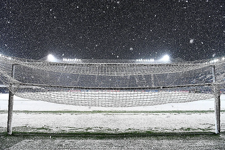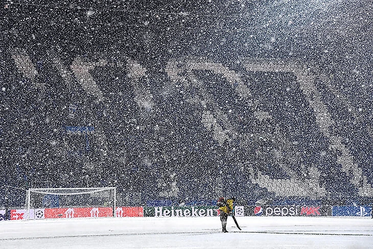 Снег пытались расчистить прямо перед игрой – шансов на это почти не было.