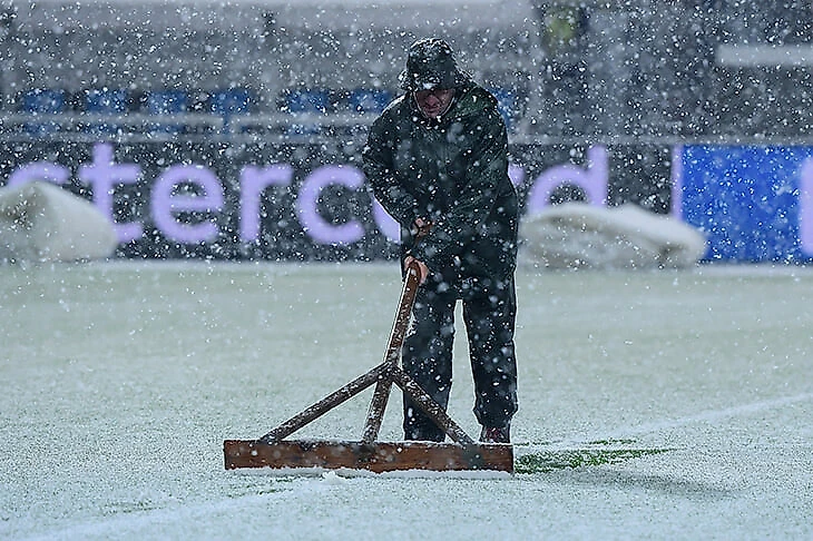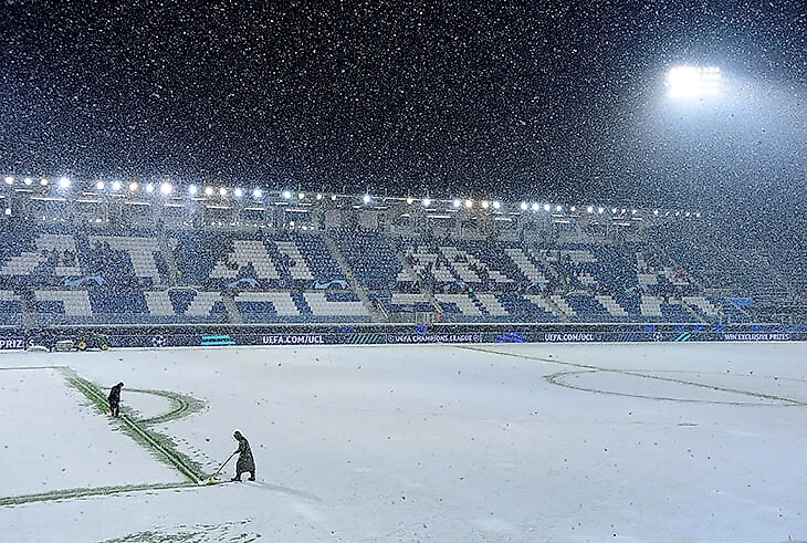 Концовка группового этапа Лиги чемпионов затягивается – матч «Аталанты» и «Вильяррела» перенесен на четверг из-за снегопада в итальянском Бергамо. Такое решение принял арбитр Энтони Тэйлор после осмотра поля – сначала отложил встречу на 20 минут, а потом решил, что будет лучше провести ее на следующий день.