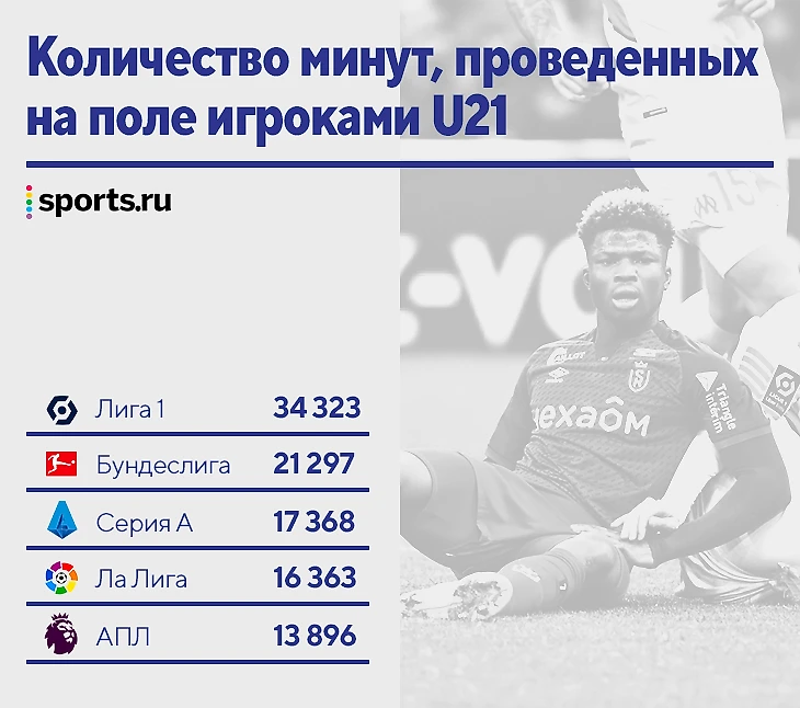 • Неудивительно, что суммарно по минутам молодежи Лига 1 намного круче своих конкурентов. Смотрите: