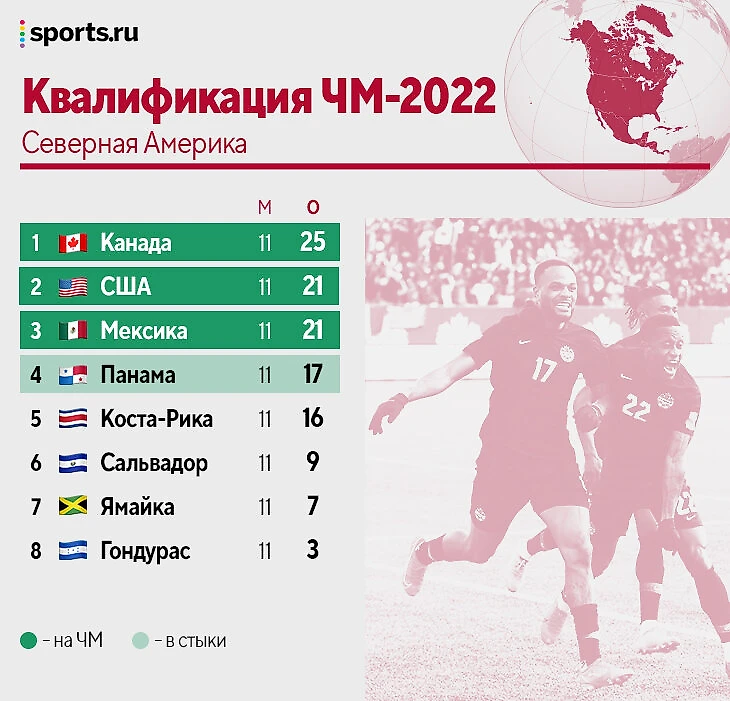 Ниже четвертого места канадцы уже не упадут даже математически. Для того, чтобы выйти напрямую, достаточно не проиграть Панаме в конце марта или набрать к тому моменту хотя бы 2 очка в матчах против Коста-Рики и Ямайки.