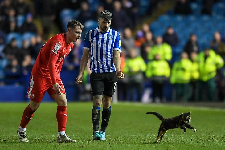 Матч английской лиги 1 (третий по значимости дивизион) «Шеффилд Уэнсдей» – «Уиган» прервала кошка – наматывала круги и поначалу не шла на контакт. Один из футболистов показал Курту Зума, как нужно обращаться с домашними животными. Аккуратно взял животное на руки, вынес за пределы поля и передал персоналу.