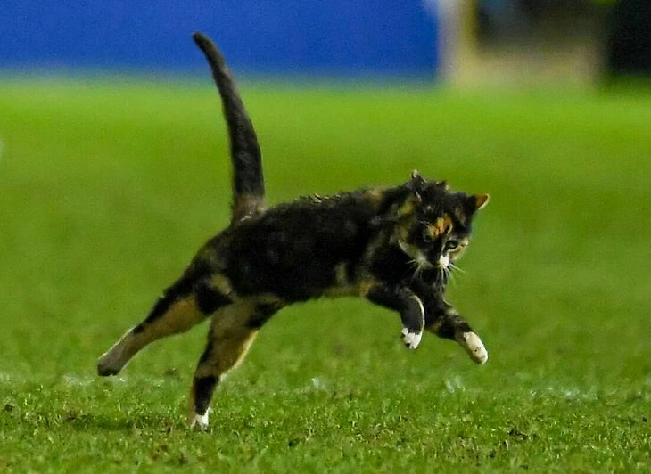 На футболе нашлась кошка, которая потерялась летом! Прервала матч и удирала от игроков