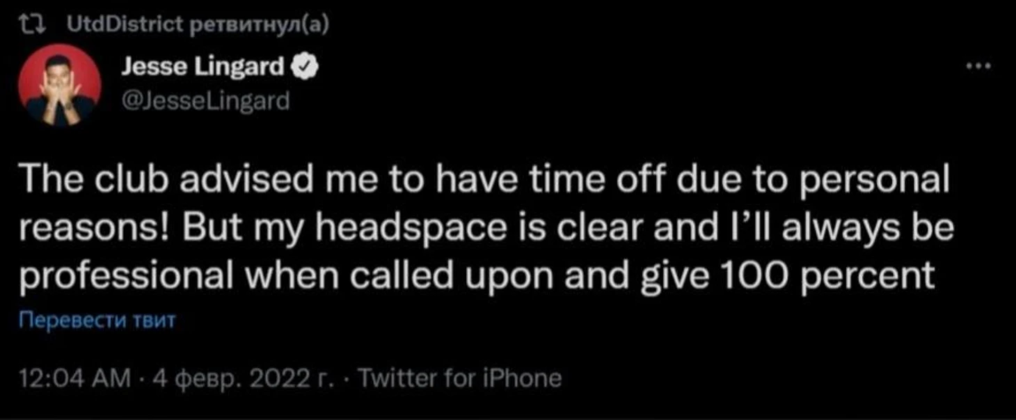При этом Лингард оставался профессионалом – понял решение клуба и отказывался брать выходной: «Клуб посоветовал мне взять отпуск по личным причинам! Но у меня правильный настрой, я всегда буду профессионалом, когда потребуется, и выложусь на все 100 процентов».
