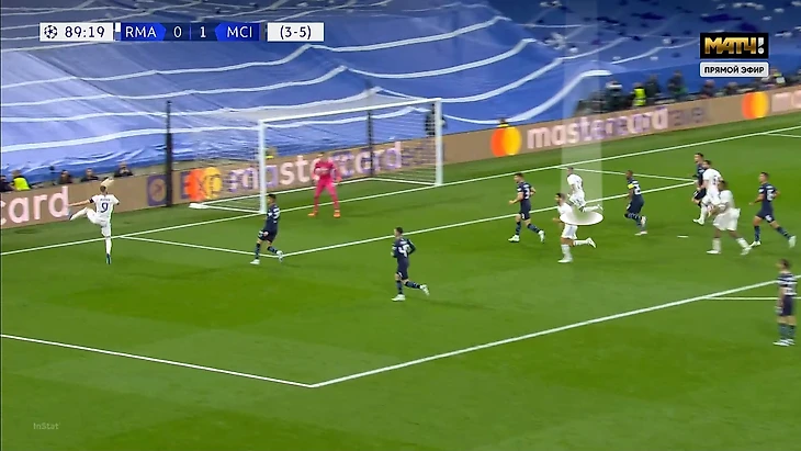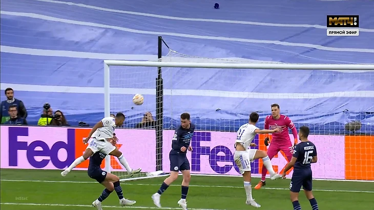 На 90-й минуте Карим Бензема элегантно сбросил верховой мяч щечкой во вратарскую на Родриго.