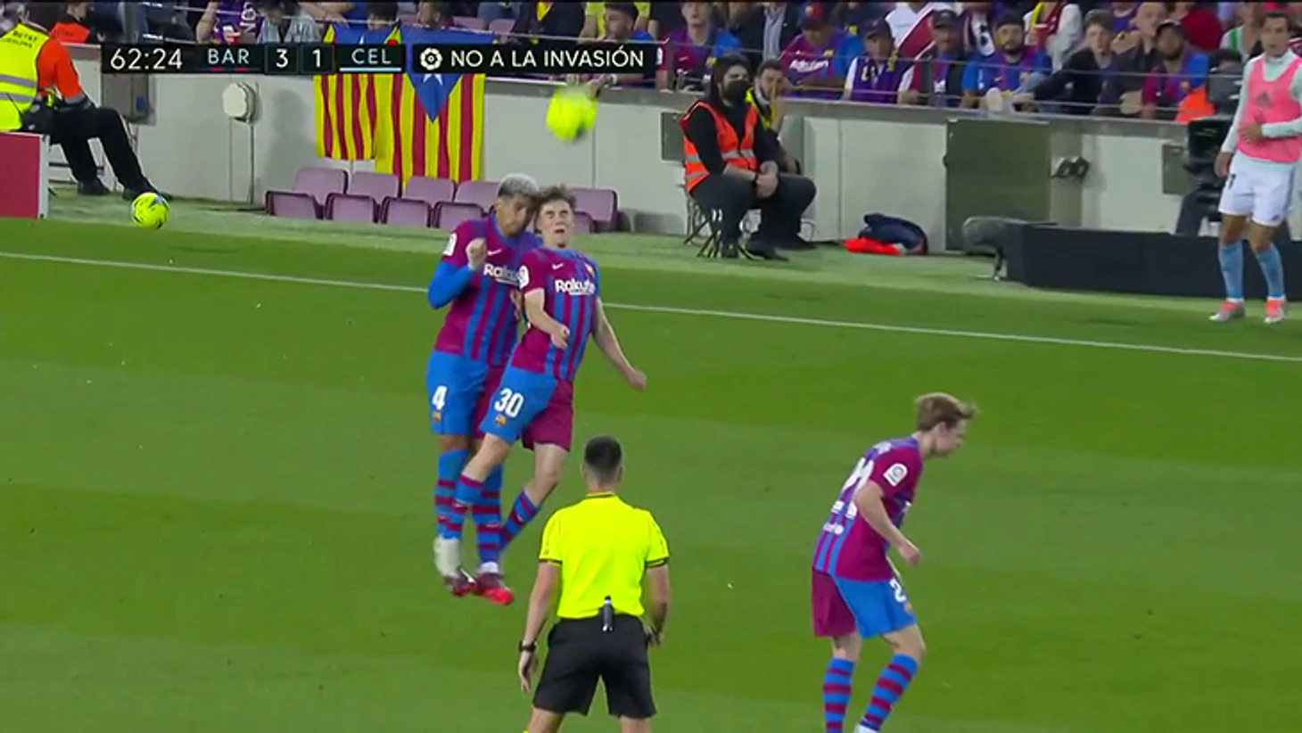 На 61-й минуте Гави и Рональд Араухо столкнулись в воздухе.
