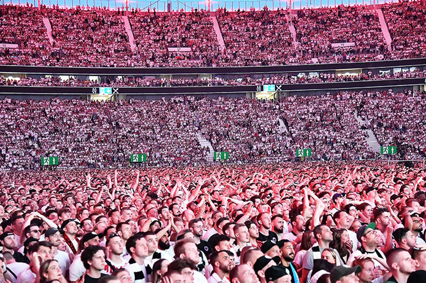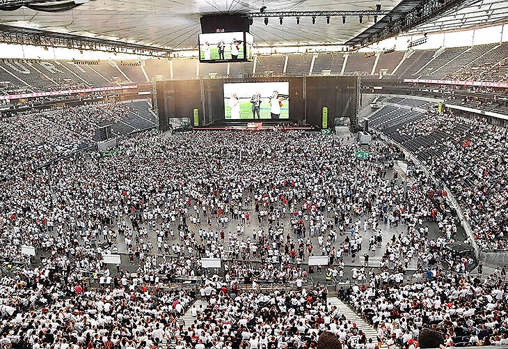 Всех позвали на франкфуртский стадион «Дойче банк Парк» – переживать за родную команду вместе.
