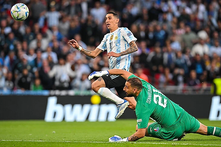 Анхель Ди Мария красиво удвоил преимущество Аргентины в Финалиссиме с Италией. Лаутаро Мартинес вывел Анхеля один на один – а тот технично перекинул Джанлуиджи Доннарумму.