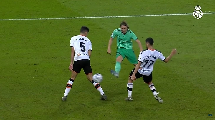 Модрич – король тривелы. Но Бенитес почему-то запрещал Луке бить внешней стороной стопы
